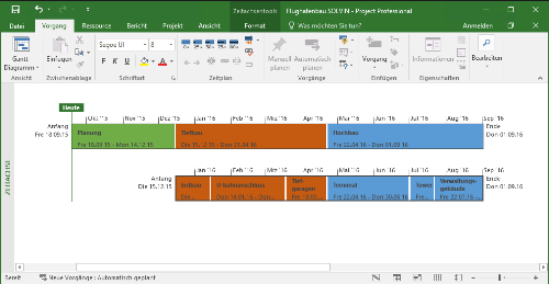 - תצוגת צירי הזמן המרובים של הפרוייקט עוזרת לך להציג את הפרוייקט באופן חזותי כדי להעביר מצגות נהדרות לצוות, למנהלים ולבעלי עניין.